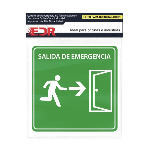 - ✅ Letrero indicador de la SALIDA DE EMERGENCIA flecha lado derecho en caso de emergencia. Ideal para cumplir las normas de protección civil