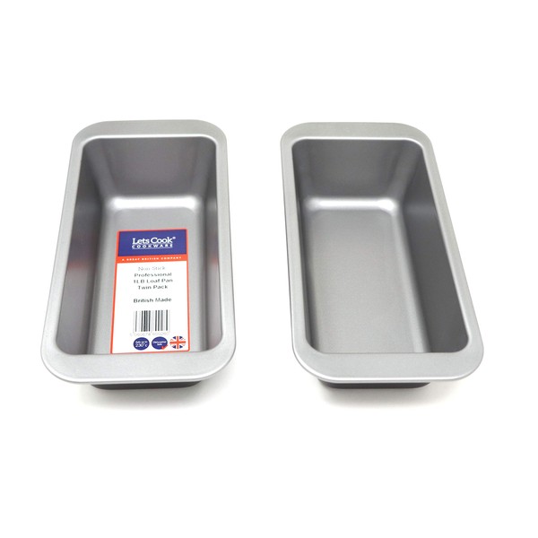 Lets Cook Cookware Professional 1LB Loaf Pan Twin Pack, 450g, British Made with Double Coated Performance Non Stick