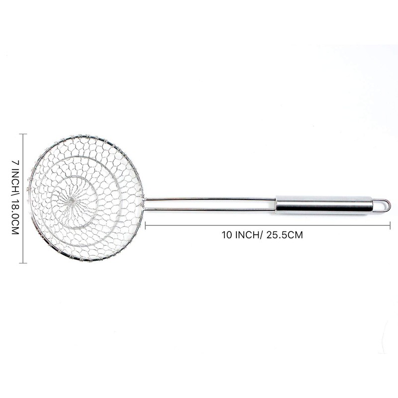 Letschef Stainless Steel Spider Strainer Asian Kitchen Mesh Wok Strainer Wire Food Cooking Skimmer Basket, 7-Inch, Hand-Made