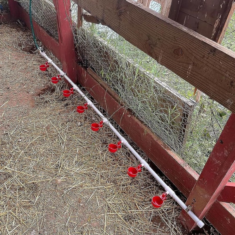 letsFix Automatic Chicken Watering System with PVC Pipe (Real Complete Set Pipeline) - 1/2" PVC Tee Fittings & Pipe & Garden Hose Connect to Water Tank, Automatic Poultry Waterer Feeder Kit