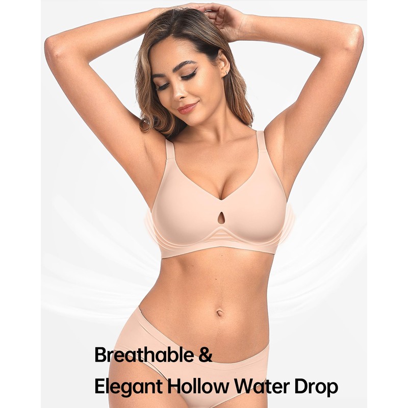 - 【Breathable Hollow Water Drop Design】Delicate water drop cutouts combine breathability and elegance in LetsJoli wireless bras for women, creating a comfortable experience while enhancing comfort and fit. The breathable hollow cutouts enhance airflow, keeping you cool and dry during extended wear and improving overall comfort.