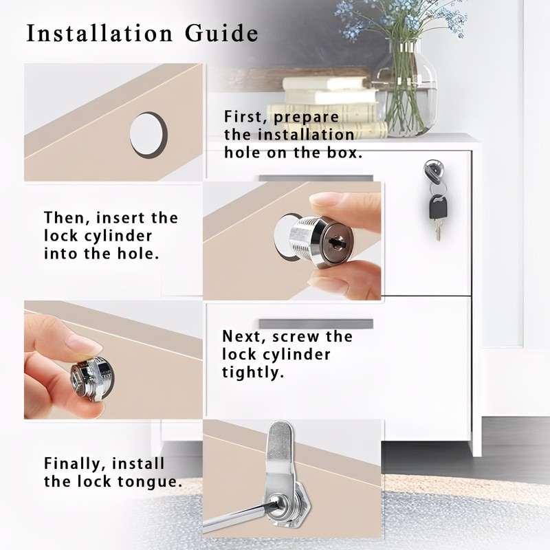 Easy to install, the lock set includes all necessary components for a quick and straightforward installation process.you can have the lock in place in no time. Its simple yet effective design makes it an ideal choice for home and office use, as well as for businesses looking to secure important items.
