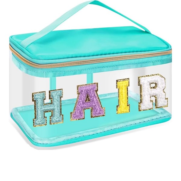 Letter Clear Makeup Bags, Preppy Patch Makeup Bag with Handle (Green, One Size)