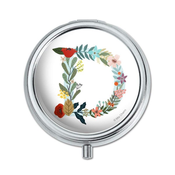 Letter D Floral Monogram Initial Pill Case Trinket Gift Box