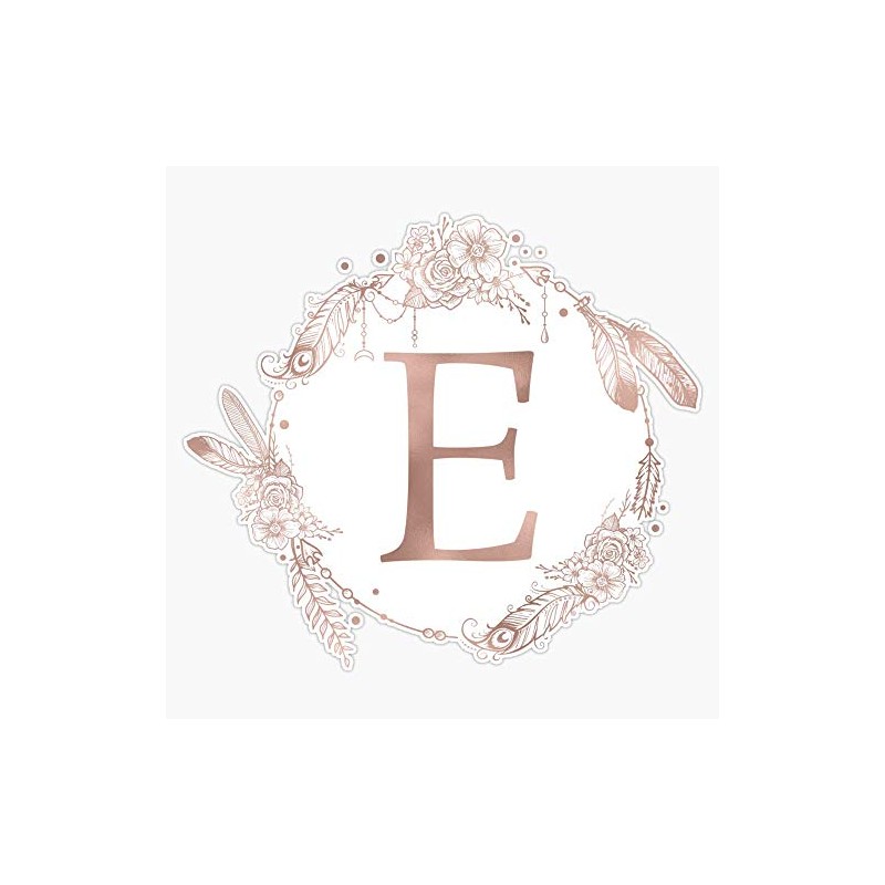Letter E Rose Gold Pink Initial Monogram Vinyl Waterproof Sticker Decal Car Laptop Wall Window Bumper Sticker 5"