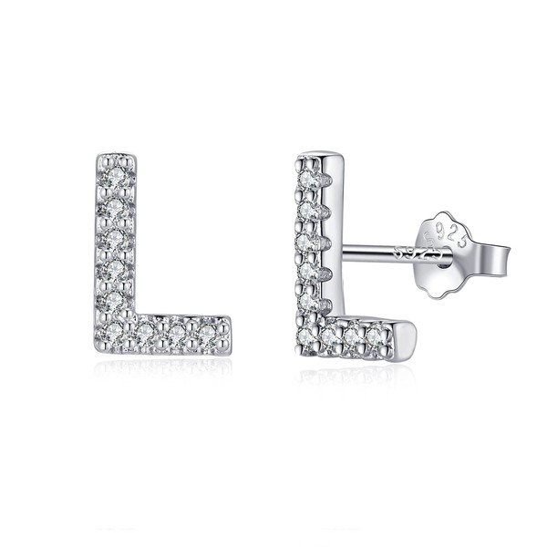 Letter Earrings Silver 925 Initial Small Earrings for Girls Women Birthday, Cubic Zirconia, Cubic Zirconia