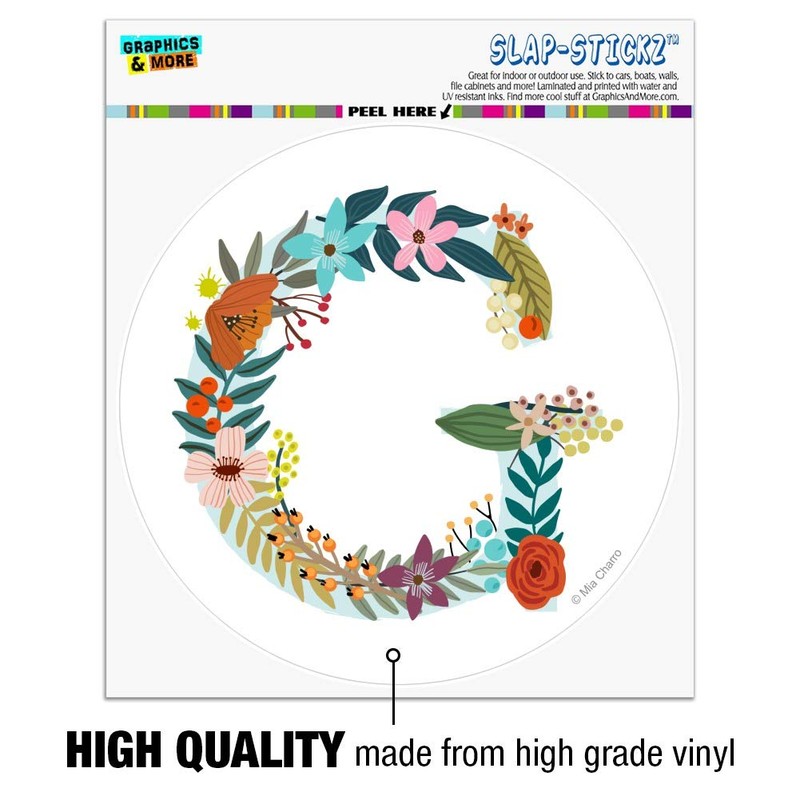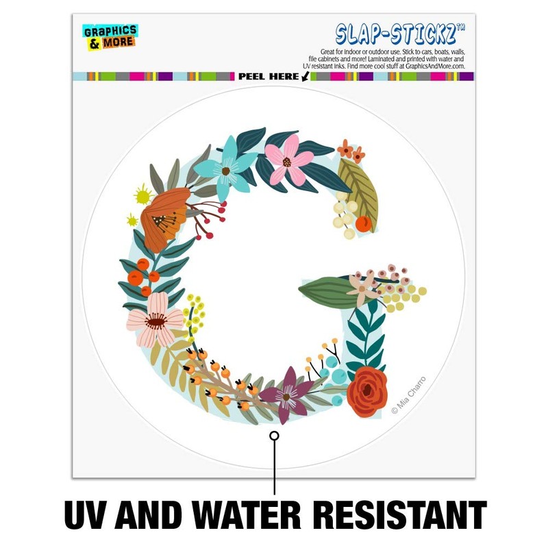 Letter G Floral Monogram Initial Automotive Car Window Locker Circle Bumper Sticker