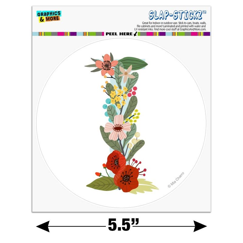 Letter I Floral Monogram Initial Automotive Car Window Locker Circle Bumper Sticker