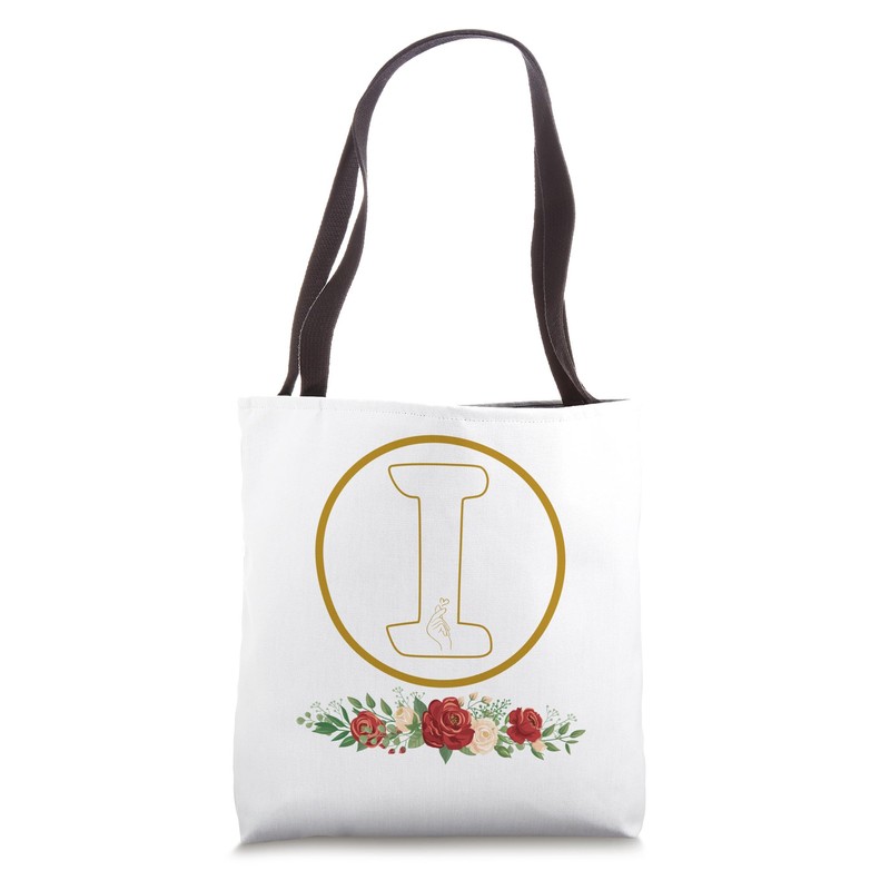 Letter I Initial Floral Monogram with Hand Heart Gesture Tote Bag