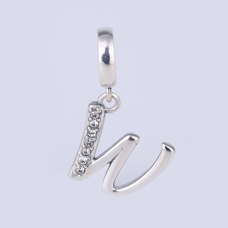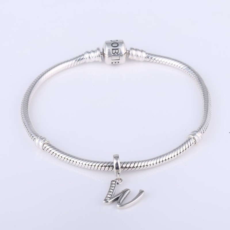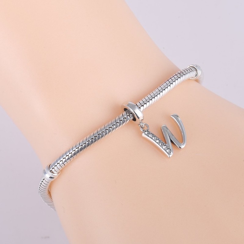 Letter Initial A-z Alphabet Beads Solid 925 Sterling Silver Dangle Crystal Charms European Bracelets (W)