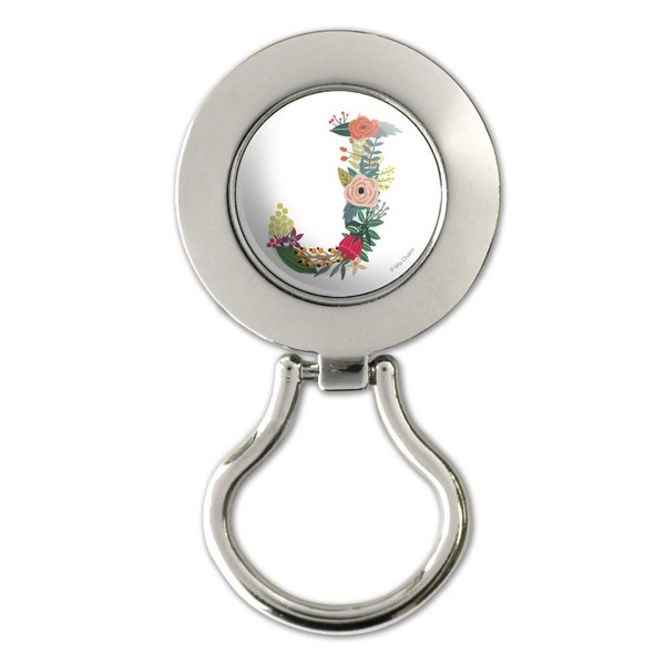 Letter J Floral Monogram Initial Magnetic Metal Eyeglass ID Badge Holder