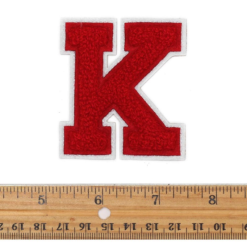 Letter K - 2-1/2" Chenille Stitch Varsity Iron-On Patch by pc, TR-12154 (Red)