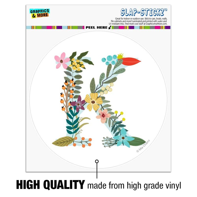 Letter K Floral Monogram Initial Automotive Car Window Locker Circle Bumper Sticker