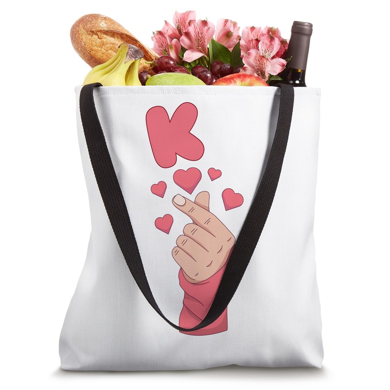 Letter K Monogram with Heart Gesture, Cute Monogram Initial Tote Bag