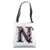 Letter N Initial Floral Monogram Rose Pink Flower Butterfly Tote Bag
