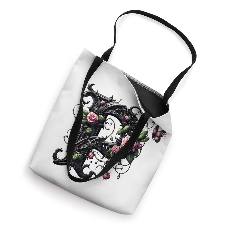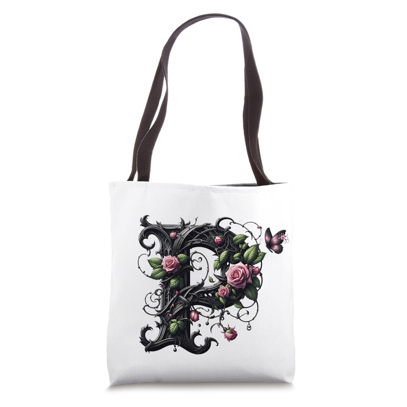 Letter P Initial Floral Monogram Rose Pink Flower Butterfly Tote Bag