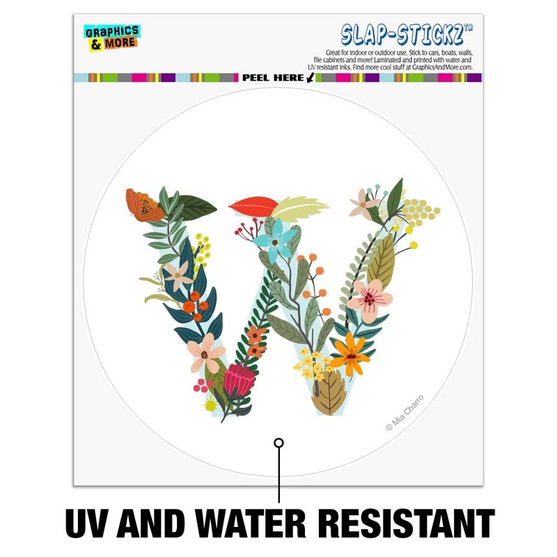 Letter W Floral Monogram Initial Automotive Car Window Locker Circle Bumper Sticker