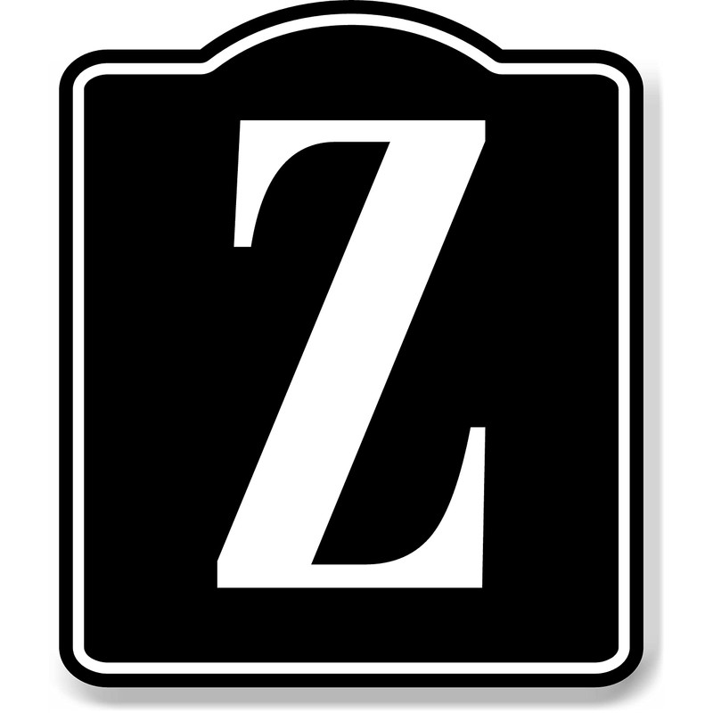 Letter Z Bin Aisle Row Marker Label BLACK Aluminum Composite Sign, 8.5"x10"
