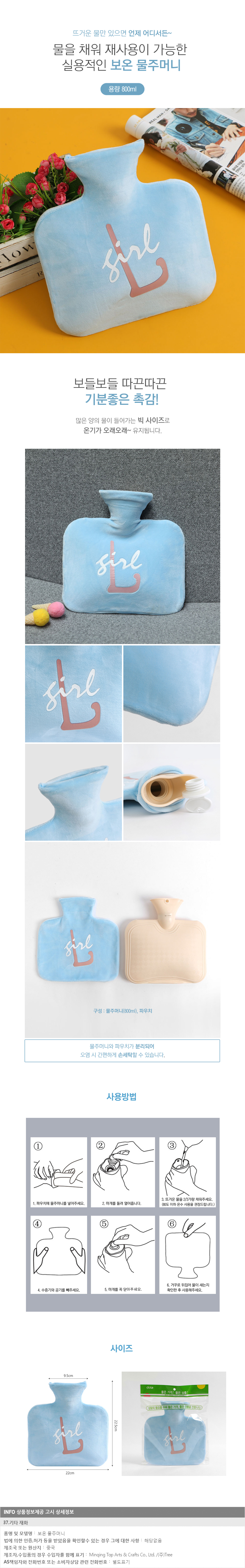 Lettering pouch, thermal water bag, 800ml steaming hand warmer blue