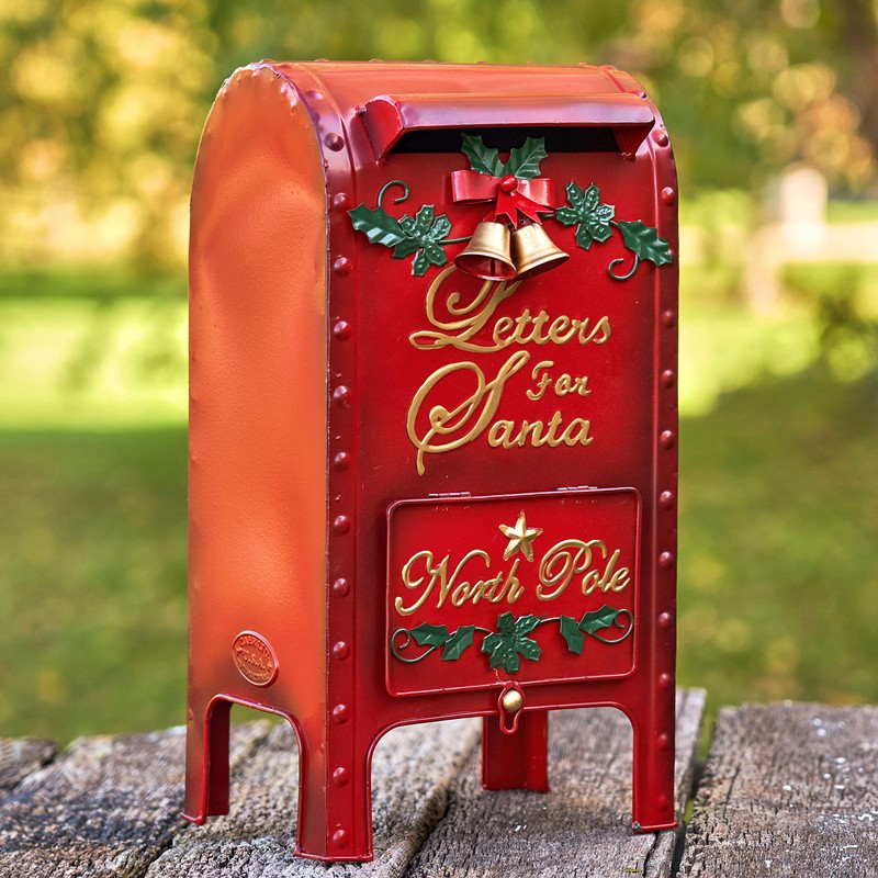 - Santa's Mail Box- made of Iron and powder coated. Letters to Santa Mailbox is a wonderful addition to any Christmas display. The door opens at the bottom to collect the letters. This fully functioning mailbox is a fun addition for children to drop in their letters to Santa Claus. Beautiful Mail Box for any scene or stand alone.