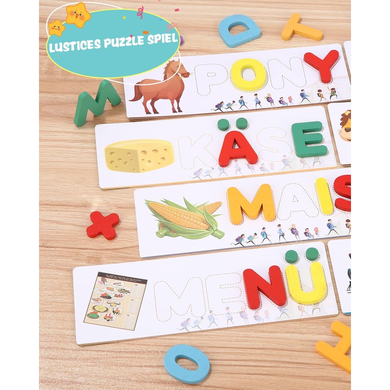 - German words toy: The children's toy from 3-8 years helps develop memory, hand-eye coordination, communication and word recognition. Great for children, counting games can help children improve their logical thinking, train their practical skills and solve problems of daily life by applying arithmetic tasks to learn words and letters and master skills.