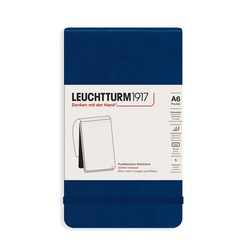 LEUCHTTURM1917 364416 Notepad Pocket (A6), Hardcover, 184 Numbered Pages, Dotted, Navy