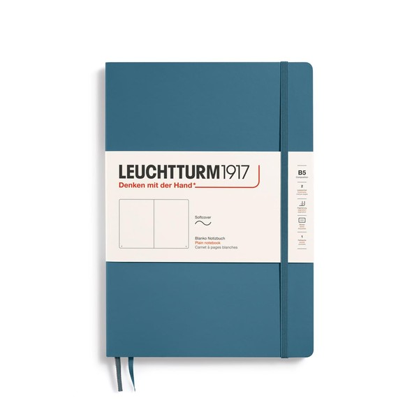 LEUCHTTURM1917 365636 Notebook Composition (B5), Soft Cover, 123 Numbered Pages, Stone Blue, Blank