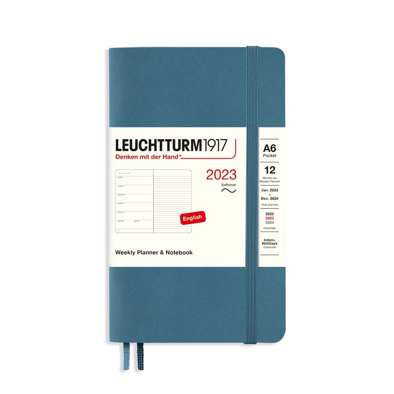 LEUCHTTURM1917 365927 Weekly Calendar & Notebook Softcover Pocket (A6) 2023, 12 Months, Stone Blue, English