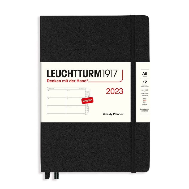 LEUCHTTURM1917 365942 Weekly Planner Medium (A5) 2023, 12 Months, Black, English
