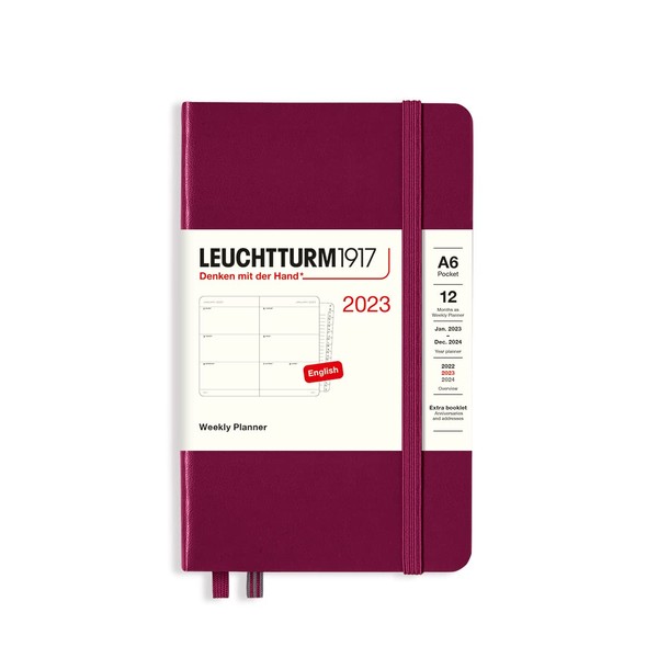 LEUCHTTURM1917 365952 Weekly Planner Pocket (A6) 2023, 12 Months, Port Red, English