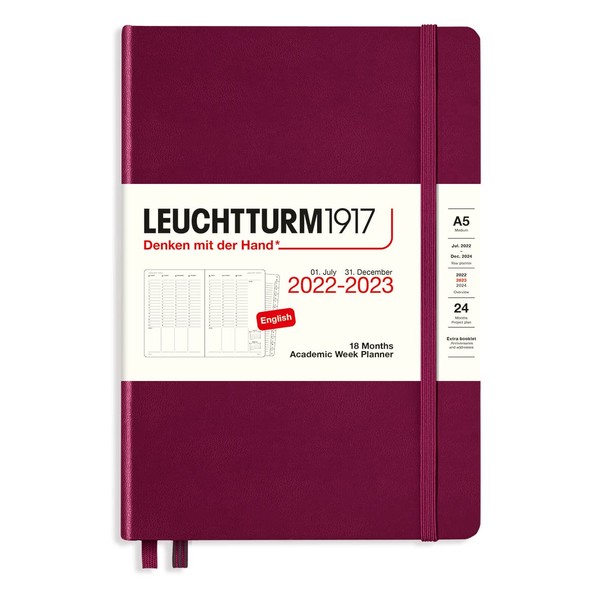 LEUCHTTURM1917 366027 Academic Weekly Planner Medium (A5) 2023, 18 Months, Port Red, English