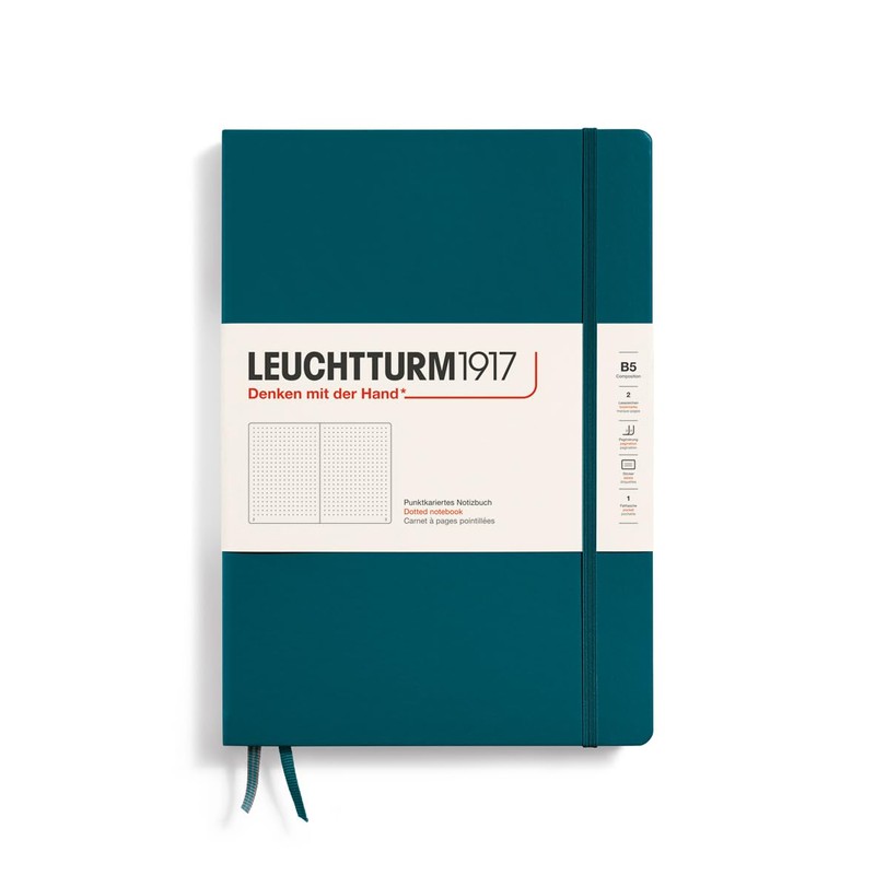 LEUCHTTURM1917 366175 Notebook Composition (B5), Hardcover, 219 Numbered Pages, Pacific Green, Dotted