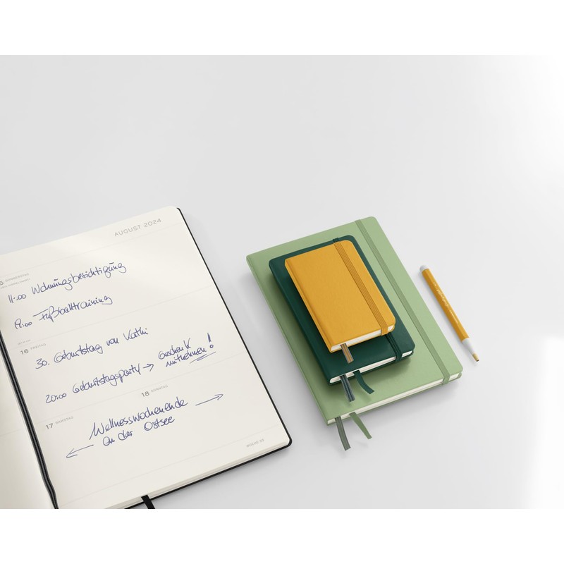 - 12 months as a weekly calendar (A5) with hard cover, German