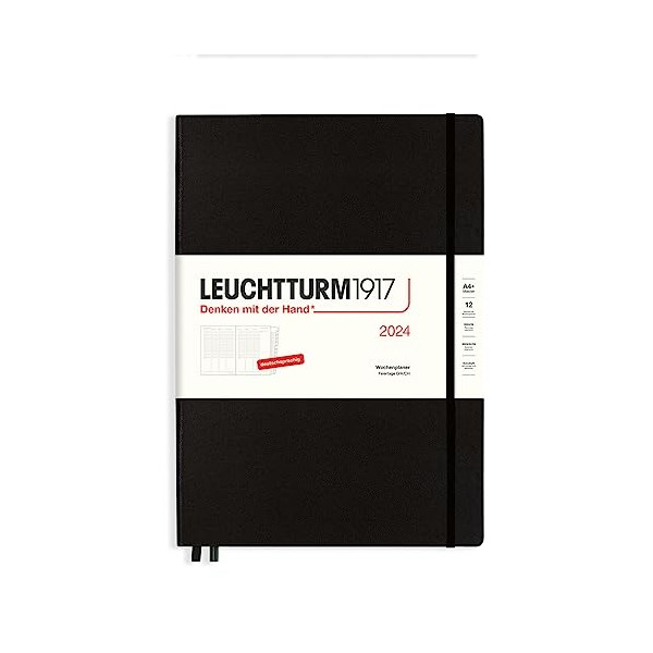 LEUCHTTURM1917 367821 Weekly Planner Master (A4+) 2024, with Extra Book for Addresses and Anniversaries, Black, German, 12 Months