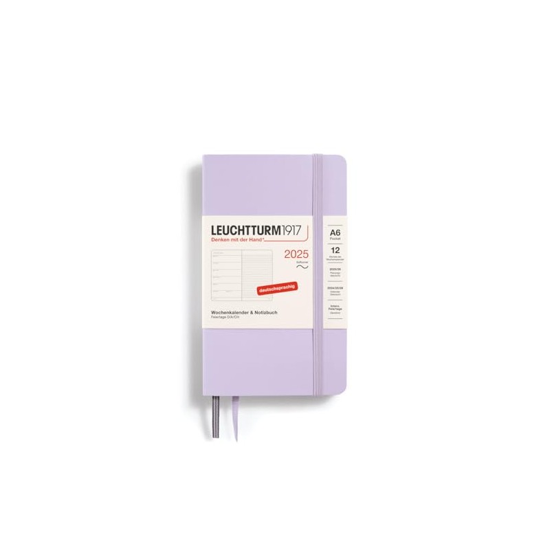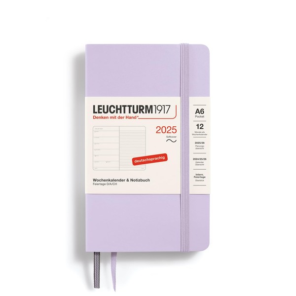 LEUCHTTURM1917 370528 2025 Weekly Calendar and Notebook, A6 Pocket Format, Softback, 12-Month Planner, 80 g, Lined, Purple