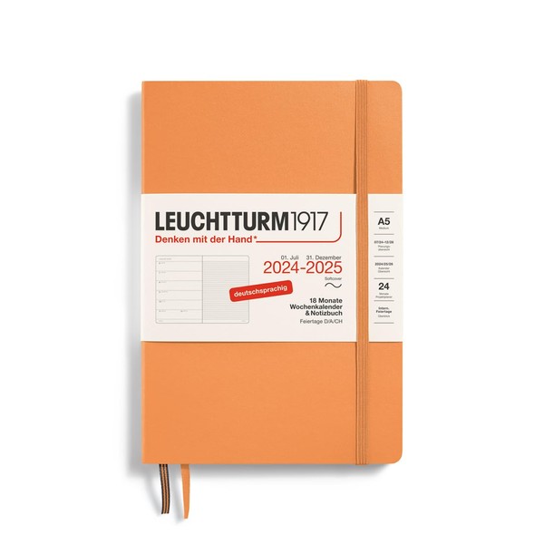LEUCHTTURM1917 370622 Weekly Calendar & Notebook 2025, Medium A5 Softcover - 18-Month Planner, 80 g, Lined - Apricot