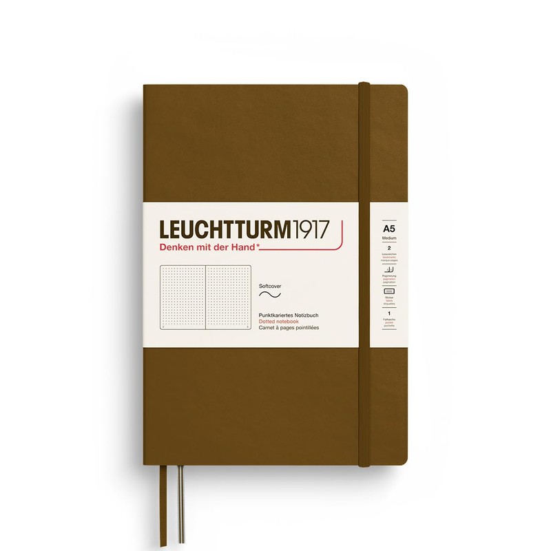 LEUCHTTURM1917 372211 Notebook, Medium (A5), Softcover Writing Book, 123 Numbered Pages, Spice Brown, Dotted