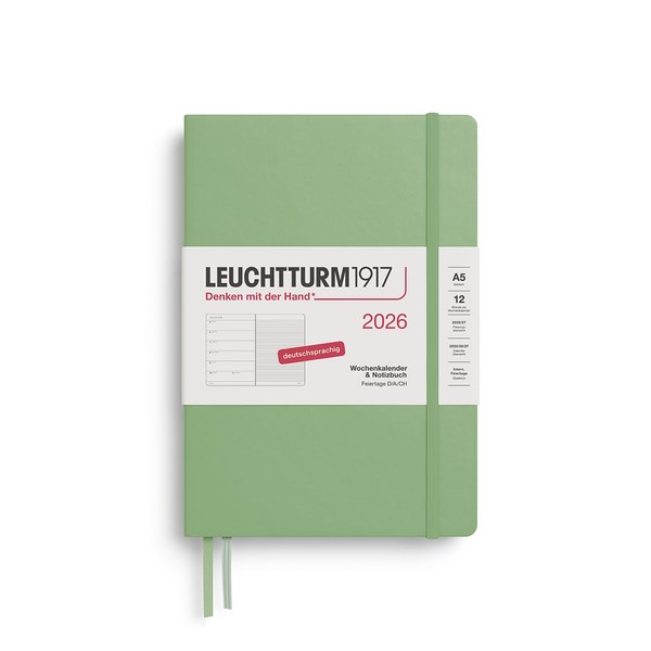 LEUCHTTURM1917 372475 Weekly Calendar & Notebook Medium (A5) 2026, 12 Months, Sage, German