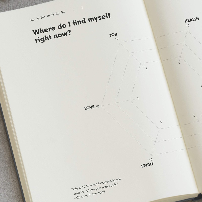 - Has all our usual dressings: convenient medium notebook size (8.25 x 5.75 inches), 294 pages filled with content, 2 ribbon page markers, extra high paper quality (100 g/sqm), stickers for labeling and archiving, a gusseted pocket for small notes, and much more.