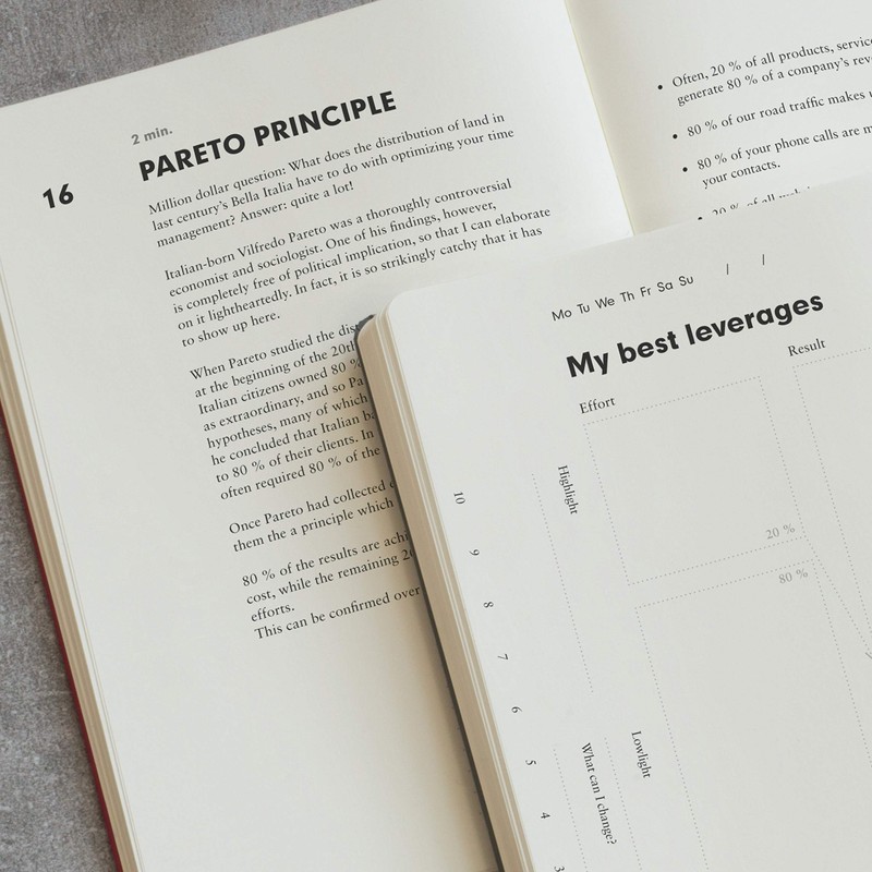 - The 24 Methods: Water - Thanks - Rewards - Circle Trick - Digital Detox - Eisenhower Principle - Habits - Clarity - Pitch Yourself - Compliments - Reading - Marginal Gains - No - Single Tasking - Clearing Out - Pareto Principle - Comfort Zone - Strengths - Essentialism - Goals - Pomodoro Technique - Emails - Saving - Journaling