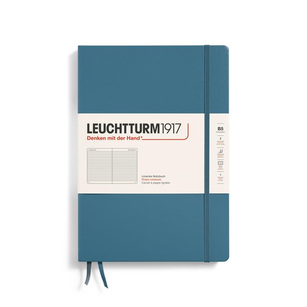 LEUCHTTURM1917 - Notebook Hardcover Composition B5-219 Numbered Pages for Writing and Journaling (Stone Blue, Ruled)