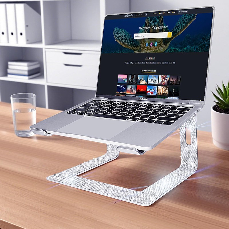 • SHINING DESIGN : The bottom of the glitter laptop stand is completely covered with over 1,000 glittering glass rhinestones, each crystal has 16 reflective surface,the susing technique is neat, exquisite and sturdy. The overall effect is extremely luxurious, adding a vivid atmosphere to the monotonous work desk, allowing you to gain more inspiration during work.