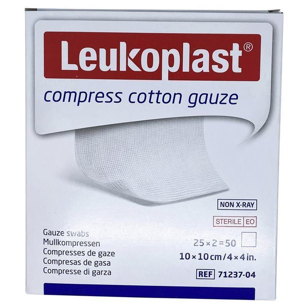 Leukoplast compress cotton gauze are sterile skin-friendly swabs for wound cleansing, protection and cover. They absorb exudate or fluids, are breathable and their tucked in raw edges prevent linting.Product Claims: Always follow the directions for use