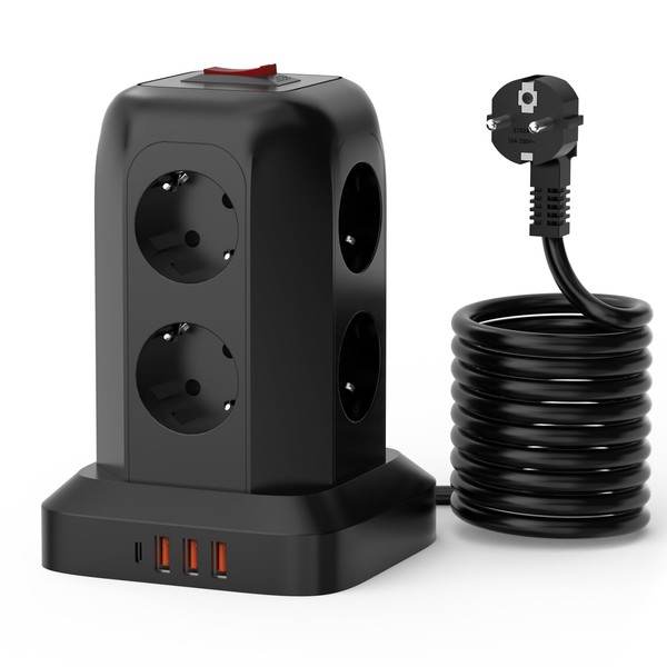 - Platzsparendes Design: Diese innovative Steckdosenleiste mit USB verfügt über ein dreidimensionales Design mit 2 AC-Steckdosen auf jeder Seite. Der große Abstand von 5,5 cm und das um 45° geneigte Steckdosendesign sorgen dafür, dass sich mehrere Stecker auch dann nicht gegenseitig behindern, wenn sie gleichzeitig eingesteckt werden. Das 1,8 Meter lange Verlängerungskabel verfügt über eine Anti-Tangle-Technologie und die Turmstruktur spart effektiv Platz auf dem Schreibtisch, sodass Sie in Ihrem Büro oder zu Hause auf Kabelsalat verzichten können und alles ordentlich und sicher bleibt!
