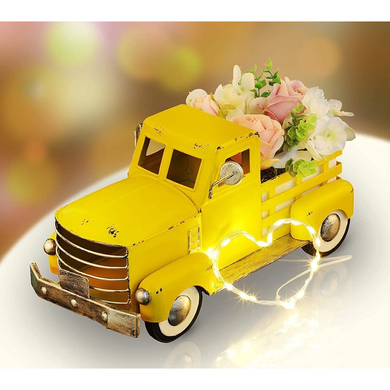 Leutsbyone Metal Truck Decor,Farmhouse Truck Decor,Decorative Tabletop Storage & Pick-up Metal Truck Planter,12.5" x 5.75" x 6.25" inches (Yellow)