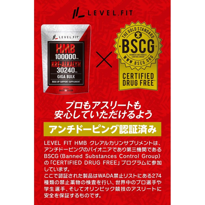 LEVEL FIT HMB クレアチン(特許成分クレアルカリン) サプリ100000mg(アンチドーピング認証済)360粒1袋