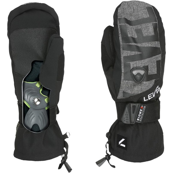 Level Fly Snowboard Mitttens with Wrist Guards (Black-Grey, Medium)