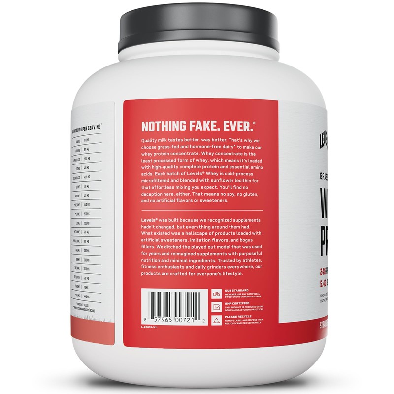 Levels Nutrition Levels Grass Fed Whey Protein Powder, No Artificials, 24G of Protein, Strawberry, 5LB
