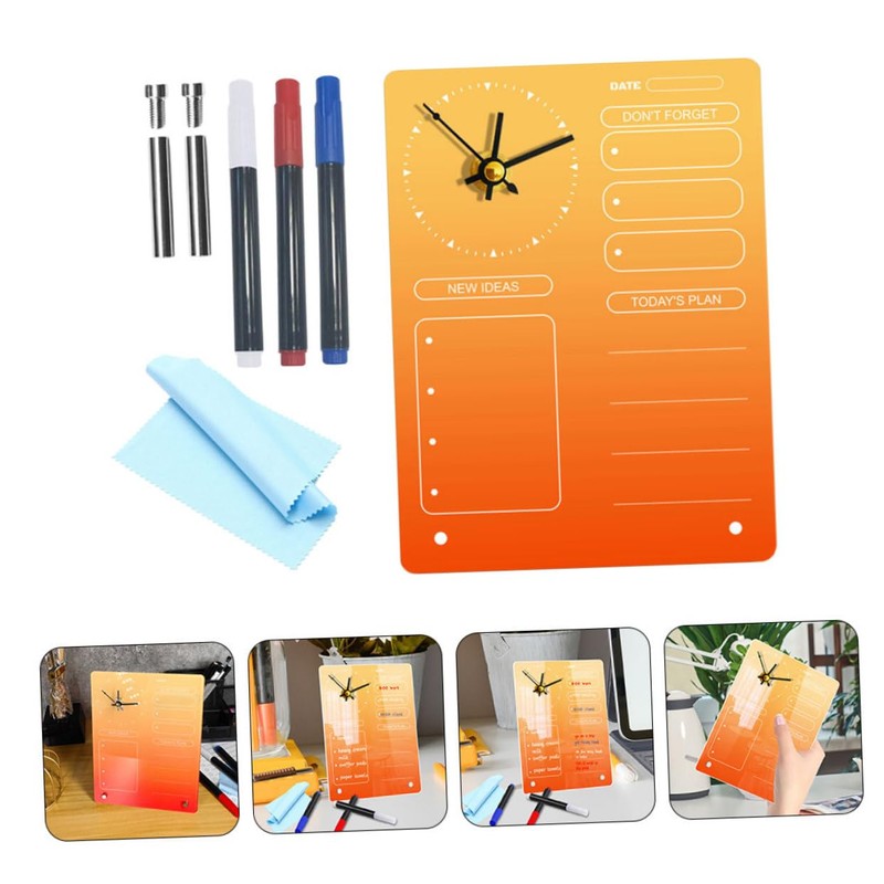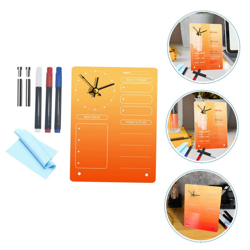 Levemolo 1 Set Desktop Planner Clock Standing Whiteboard Acrylic Dry Erase Bo...