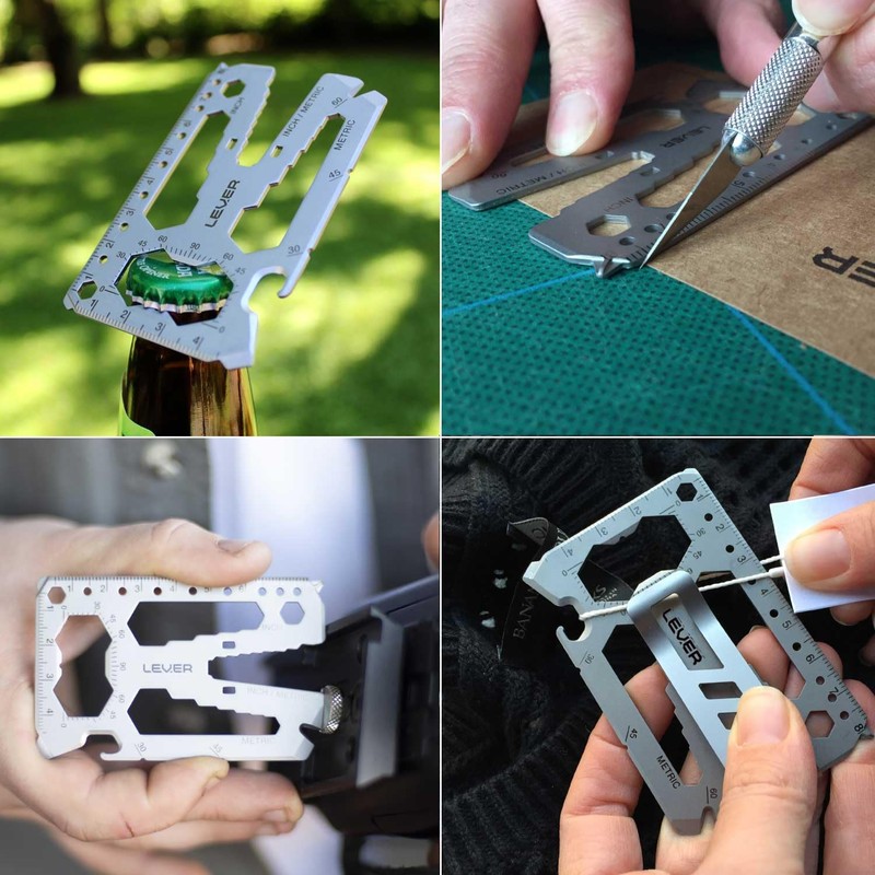 - Get Stuff Done: Knock out daily tasks on the fly. This edc multitool has 24 wrenches, screwdrivers, prybar, cord cutter, rulers, credit card bottle opener, box opener, camping can opener and more